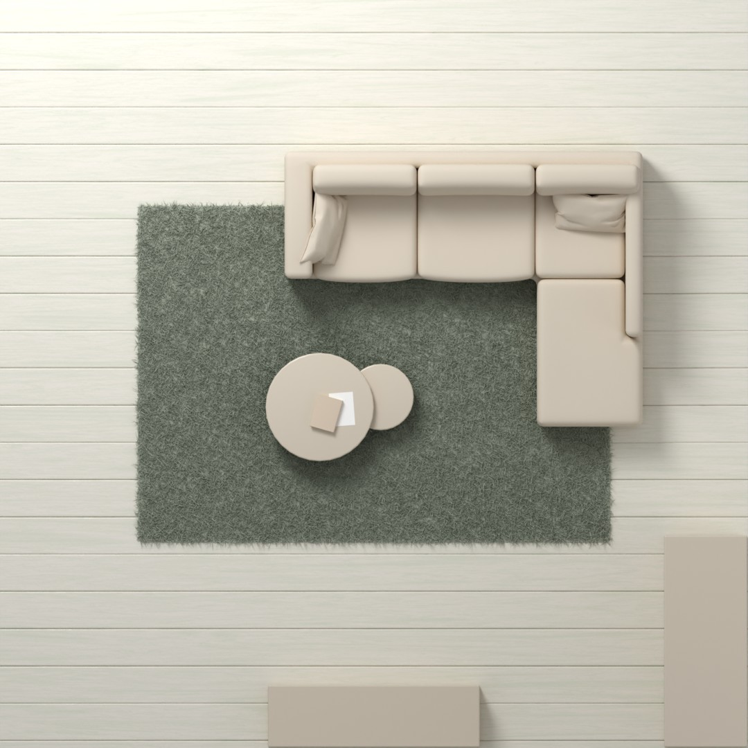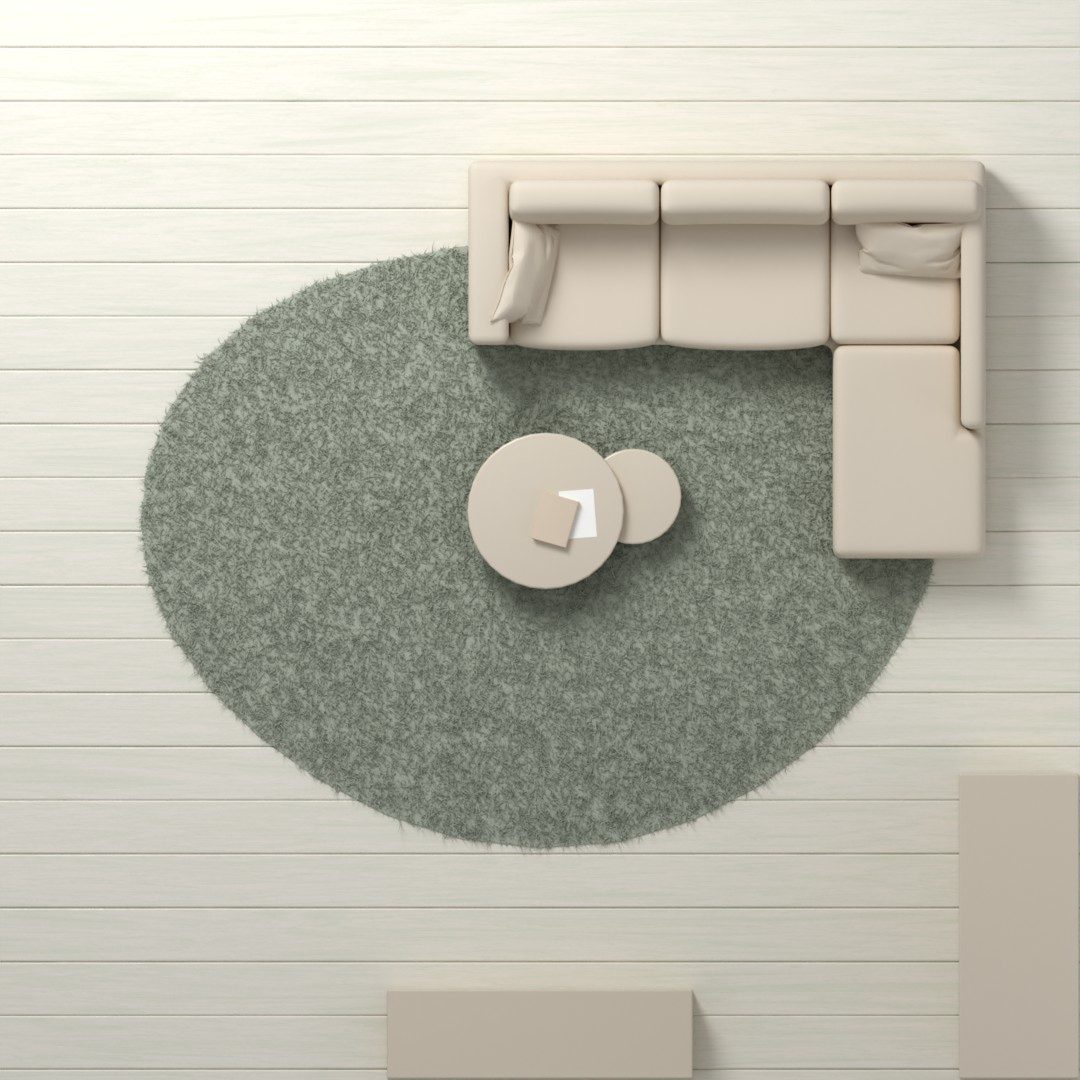 - Laat het vloerkleed de ruimte dragen, niet zweven